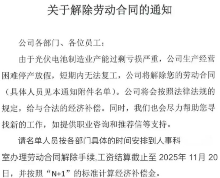 近期一则光伏裁员通知在网络上不断发酵,主要原因是替员工着想的公司少之又少,本就应该按照国家相关法律法规的规定执行的事情,现在却成为了大家眼中的好企业,任何时候都是物以稀为贵。
